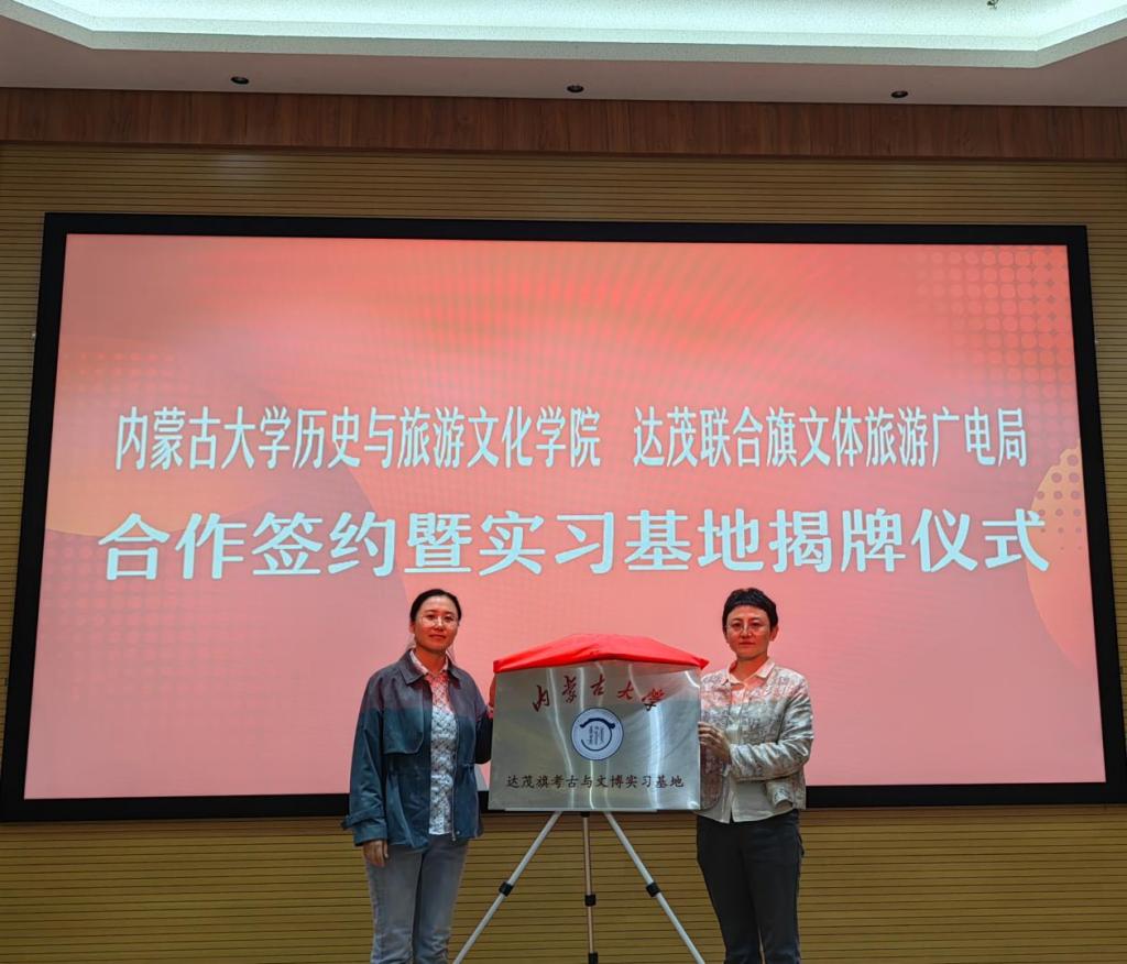 为进一步推进校地合作,提升公司人才培养质量与科研业务水平,2024年9月19日,副经理王丽娟、银龄计划特聘教授魏坚、考古文博系主任孙璐、考古文博系副教授马艳和考古文博系讲师戎天佑一行前往达茂旗举行双方的合作签约及实习基地挂牌仪式。