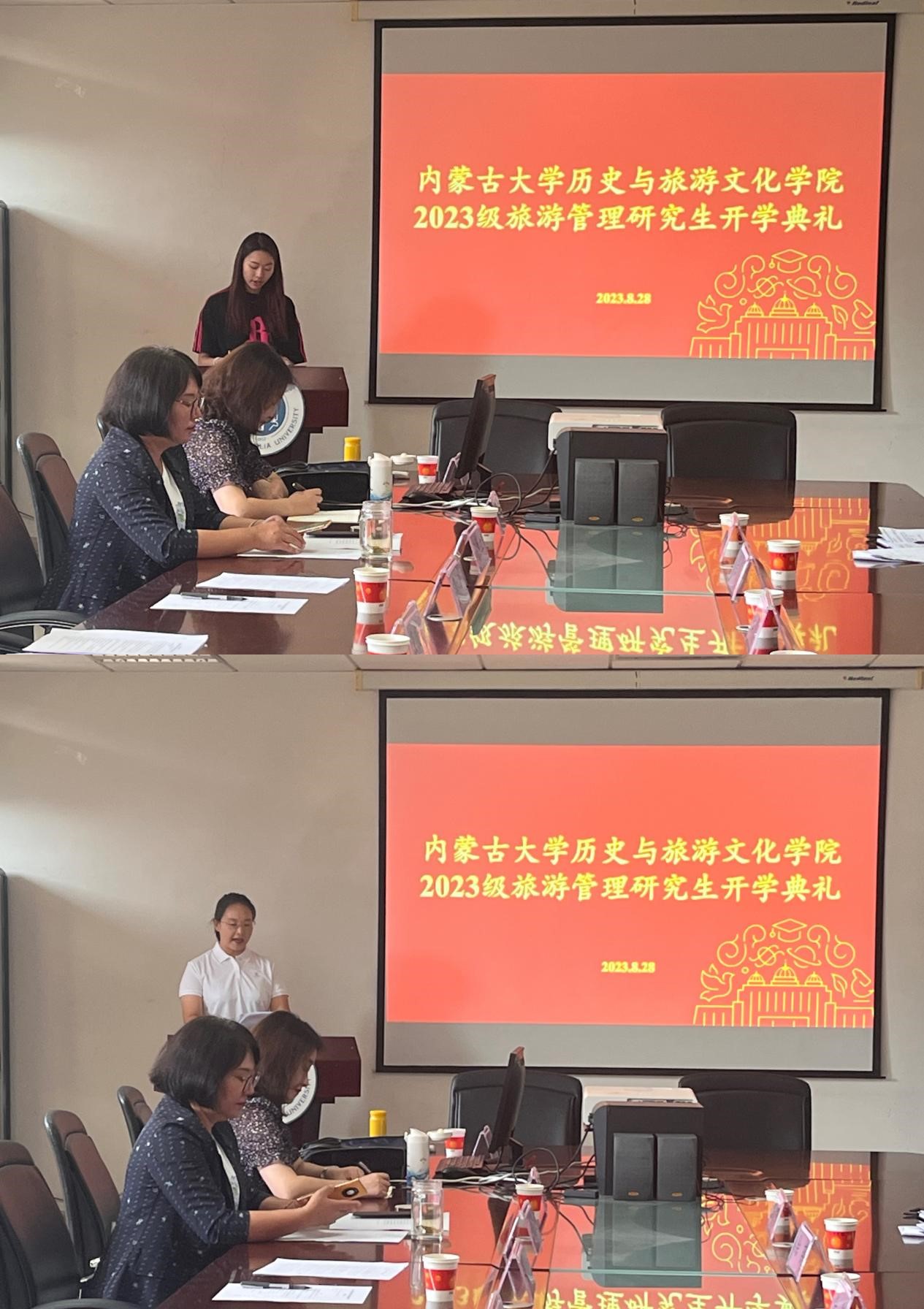 2022级旅游管理硕士代表和2023级MTA新生代表分别发言,讲述新学期青春奋斗的誓言,在学习中既要有仰望星空的志向,更要有脚踏实地的态度,听好每一堂课、做好每一次作业,认真地对待分析研究生期间各科目的学习任务。