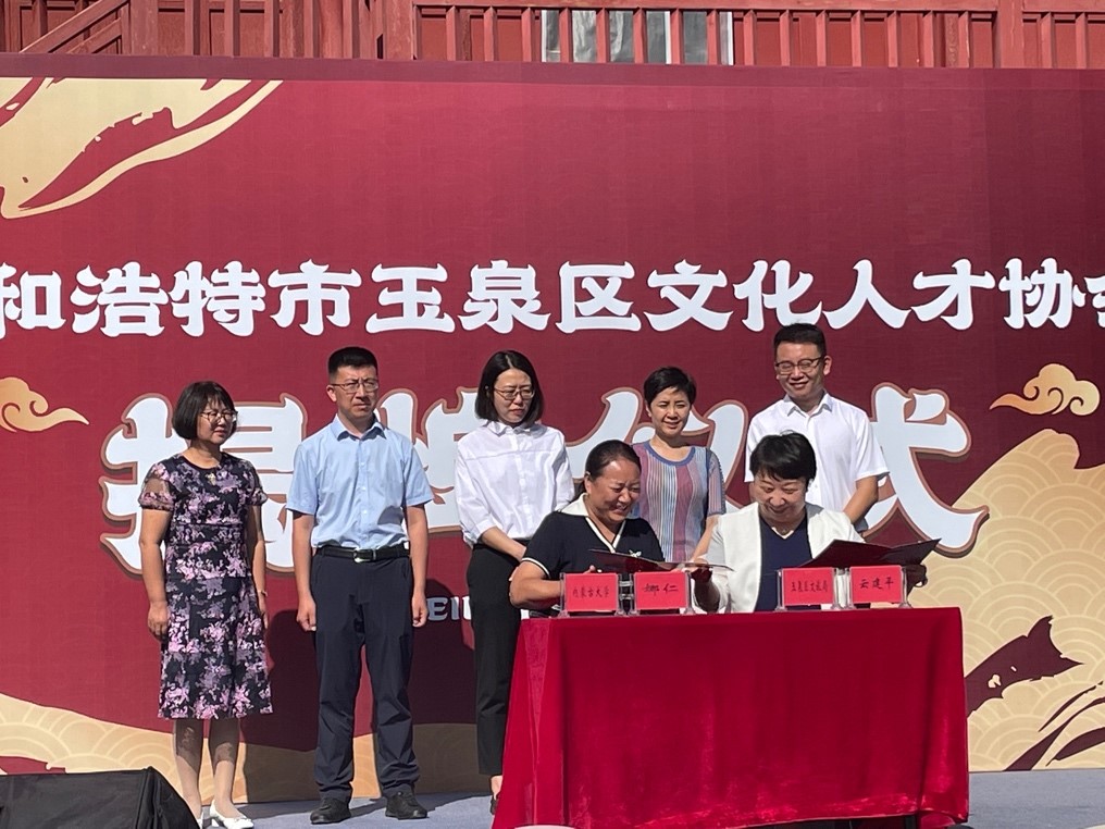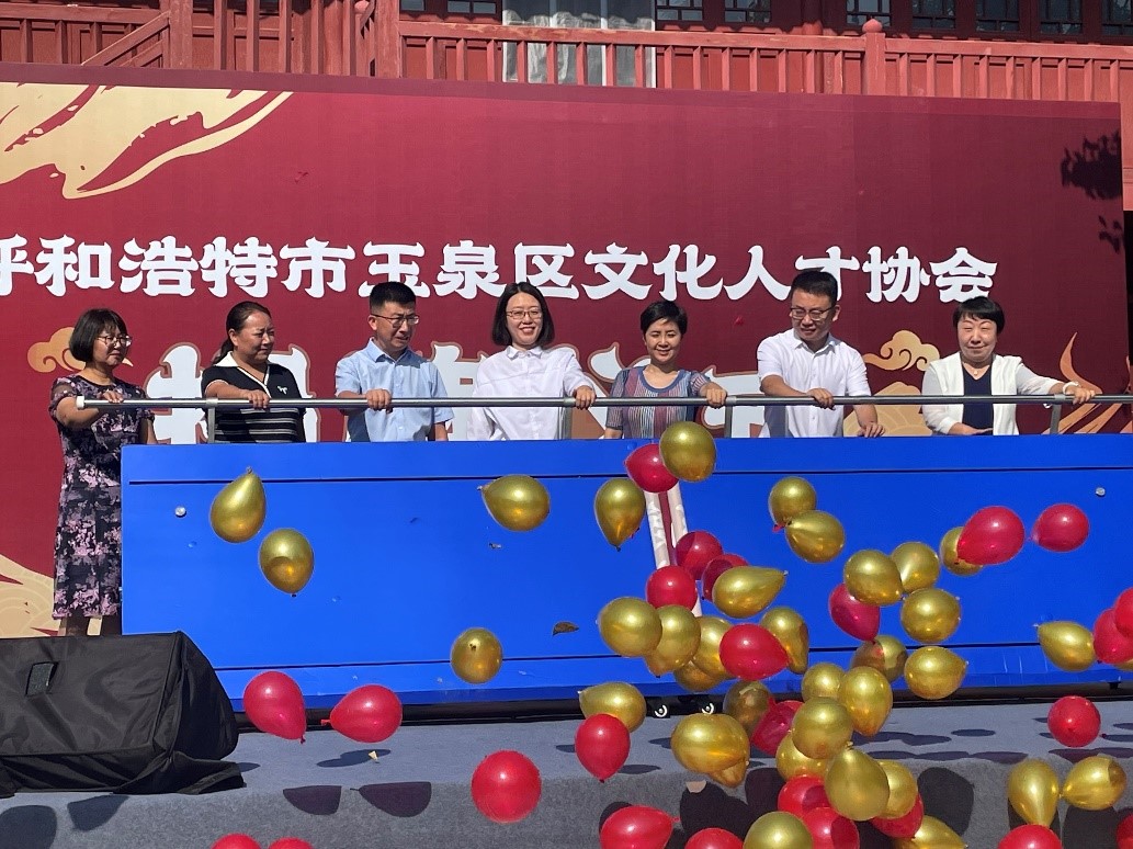 8月8日上午,“呼和浩特市玉泉区文化人才协会”揭牌仪式在玉泉区大盛魁文创园北区举行。db真人公司党委书记娜仁、副经理乌铁红教授、玉泉区委常委、组织部部长、区委人才工作领导小组常务副组长刘一丁、玉泉区文体旅游广电局党组书记、局长云建平,玉泉区组织部副部长、人力资源和社会保障局党组书记、局长荣晓霞等相关领导,以及呼和浩特市青年联合会、社会各界代表出席仪式。