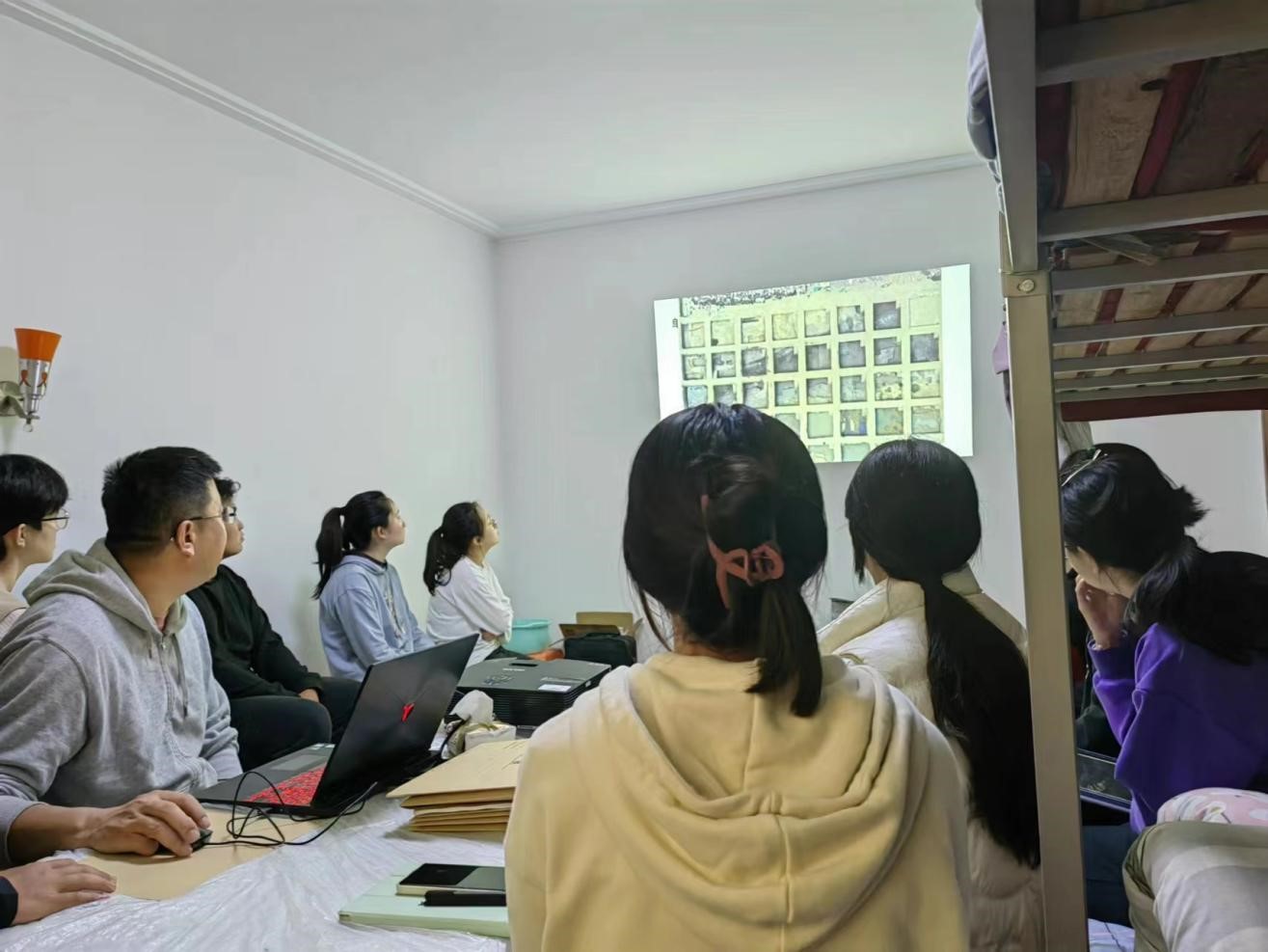 不过,本批同学实习伊始恰逢南方连绵的雨季,原制定的发掘计划只得略作调整,但同学们的实习准备却并没有因此而停滞。因下雨无法开展发掘工作时,在考古工地负责的赵帅杰老师为同学们介绍了南山遗址的主要和过去两年的主要发掘收获,并由陕西十月科技有限公司的工作人员对考古工地使用的田野考古电子记录系统的功能、使用方法做了详细的讲解;特尔巴依尔老师和戎天佑老师为大家讲述了第一批实习同学的考古发掘过程和成果,以及实习中需要掌握的田野考古学理论知识与方法;同学们还重点学习了室内资料的整理,包括出土器物的清洗、绘制器物图及照片拍摄等工作。