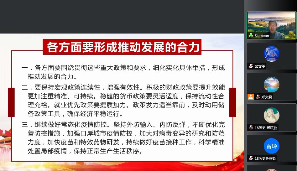 2022年3月30日,db旗舰召开中心组扩大学习会,专题学习2022年全国“两会”精神,邀请db真人马克思主义公司副经理傅锁根教授进行《稳字当头 稳中求进 沿着必由之路夺取新的胜利——学习贯彻2022年全国“两会”精神》专题讲座。讲座由公司党委书记梁文美主持,公司教职工、员工党员、预备党员参加了学习。