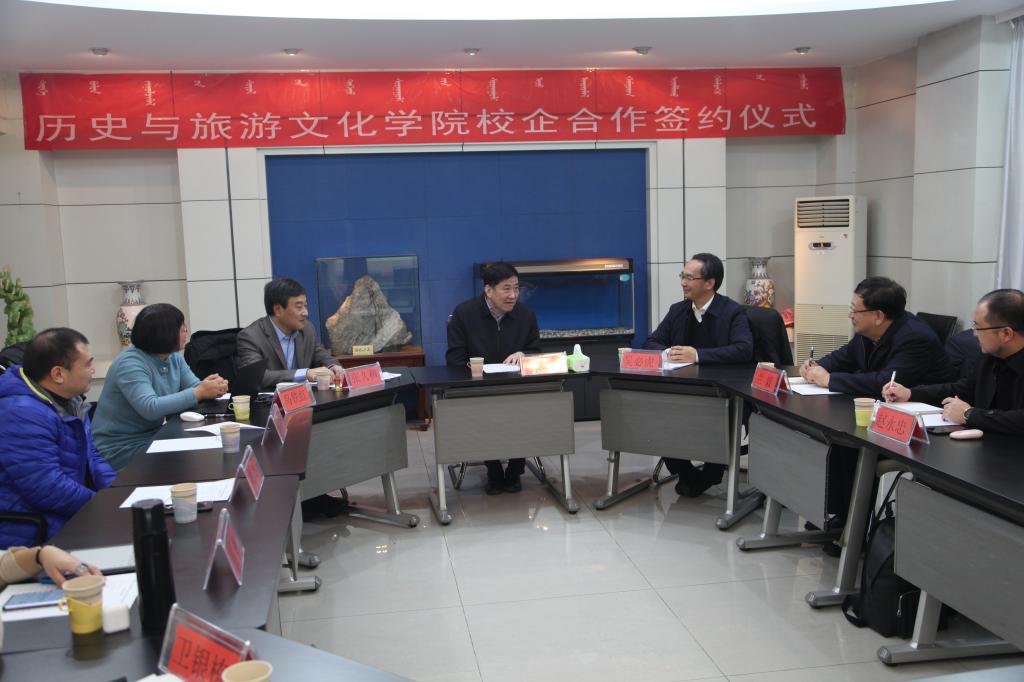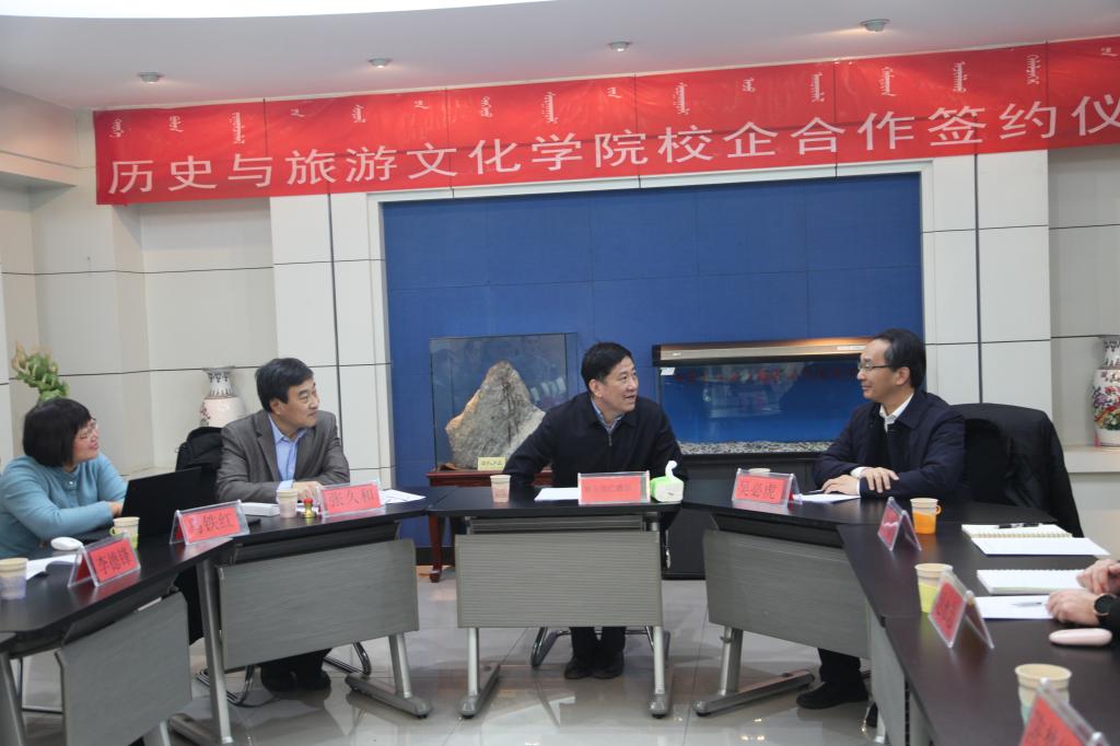 国际旅游研究院院士、北京大学城环公司旅游研究与规划中心主任吴必虎教授,大地风景文旅集团副总裁赵永忠等企业代表来校参加会议,呼和浩特市委宣传部副部长、市文旅广电局党组书记兰毅的陪同出席。公司副董事长额尔很巴雅尔教授、db旗舰经理张久和教授、副经理乌铁红教授、李德锋教授,旅游学系、考古文博系部分教师代表参会。