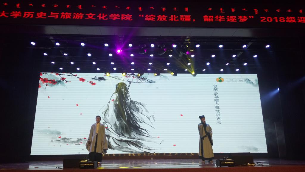 2018年9月28日19时,db旗舰2018级开学典礼暨“绽放北疆,韶华逐梦”迎新晚会在db真人创业公司文体馆举行。公司党总支书记梁文美老师,旅游系主任韩冬老师,研究生专职辅导员杜立克老师,研究生导师史林凡老师,历史学班主任贾慧如老师,旅游管理班主任白艳老师,许鹏飞老师,本科生专职辅导员陈迪老师、郑文君老师,员工代表郭亭亭,包吉夫出席开学典礼暨迎新晚会。