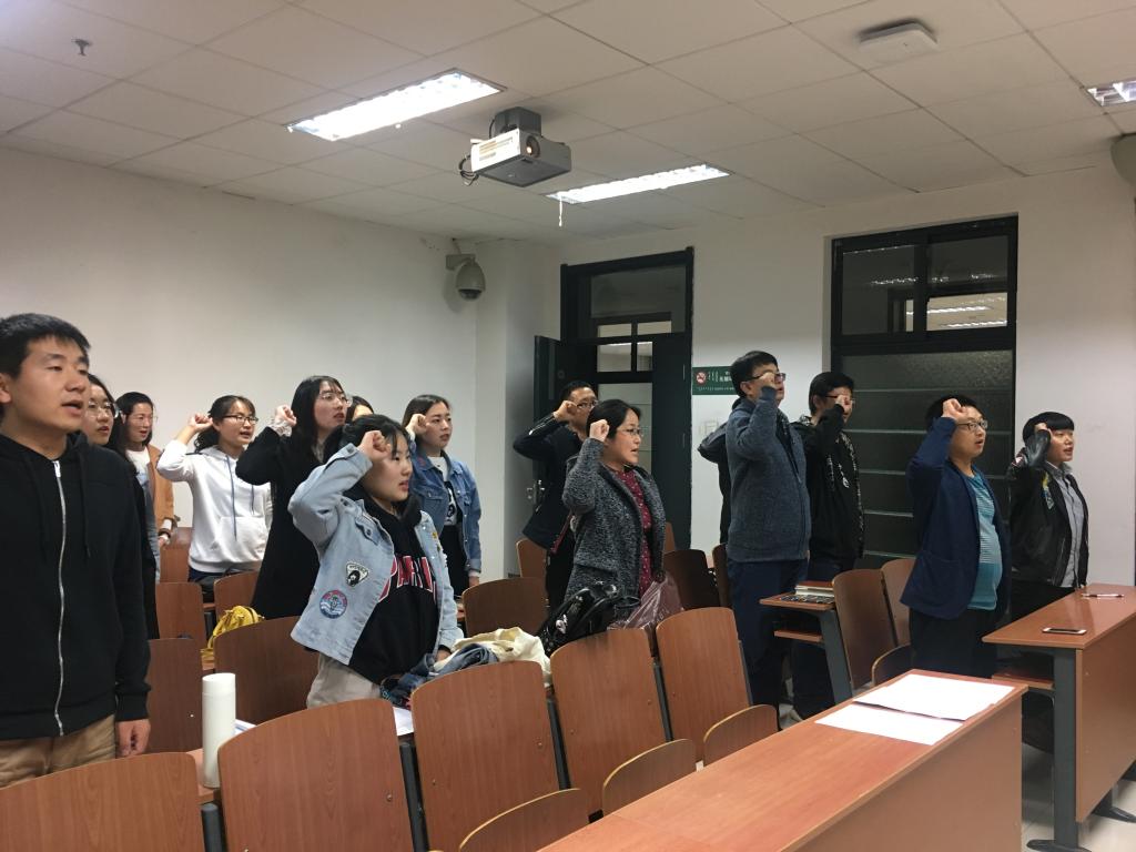 研究生党支部党员面对党旗宣誓
