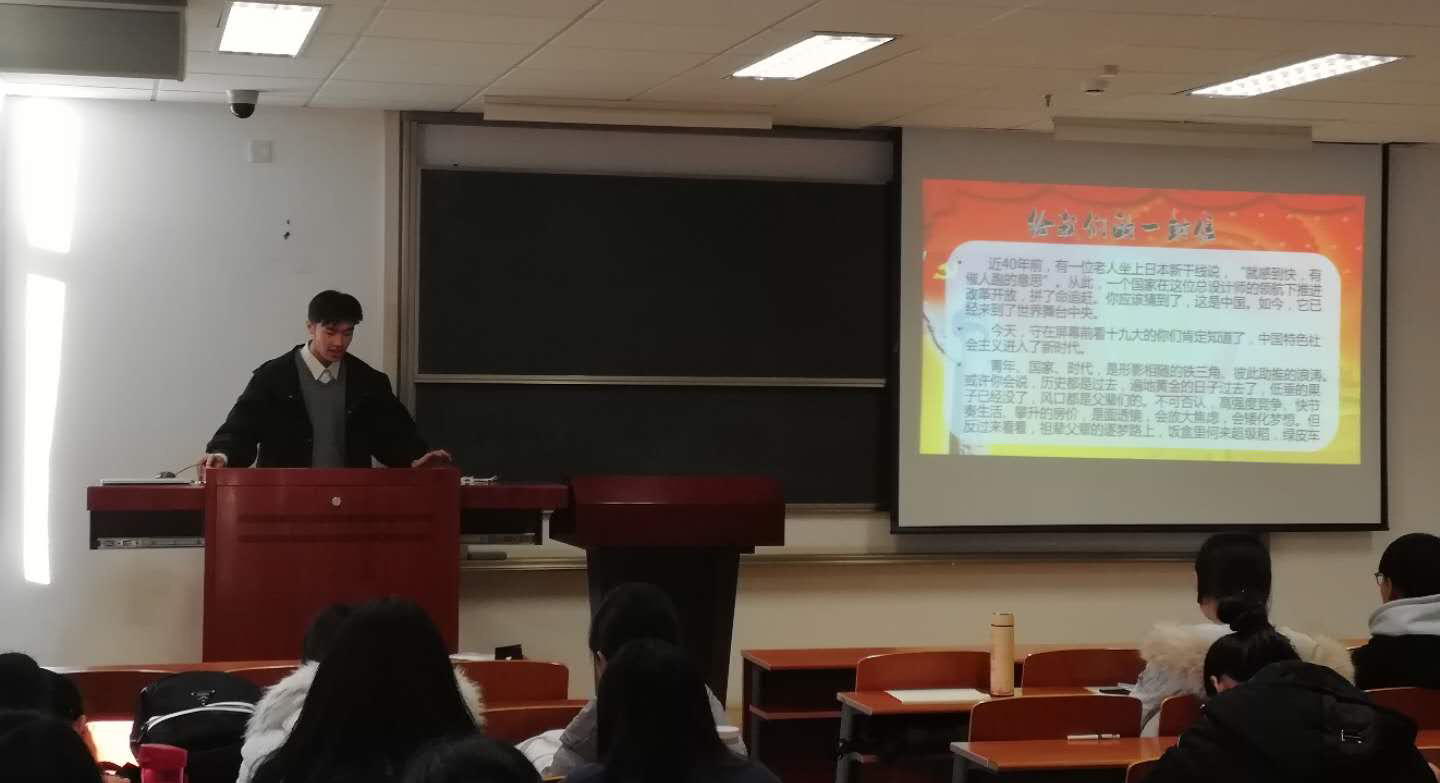 2017年12月22日中午,db旗舰团总支召开“践行新思想,拥抱新时代”布置大会。陈迪老师主持大会,团总支兼职副书记、团总支委员及各支部团支书出席会议。