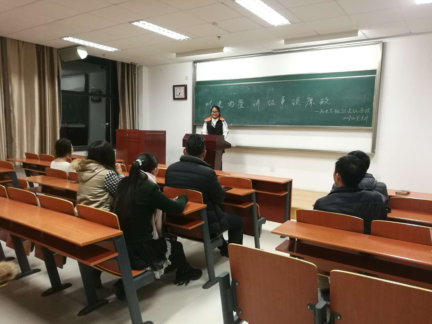 其次支部联系历史专业的独特优势,列举了历史上的廉政故事,以史为鉴。向全体党员分享了讲廉政的人物故事作为我们的标榜,如“海瑞训虎”、“杨振拒金”、“一钱太守”、“淘母退鱼”;以及贪污腐败的反面故事以提醒我们时刻警戒腐败的滋生,如“和珅--史上第一贪”、“北宋蔡京:造假账,领双份的宰相俸禄”等等