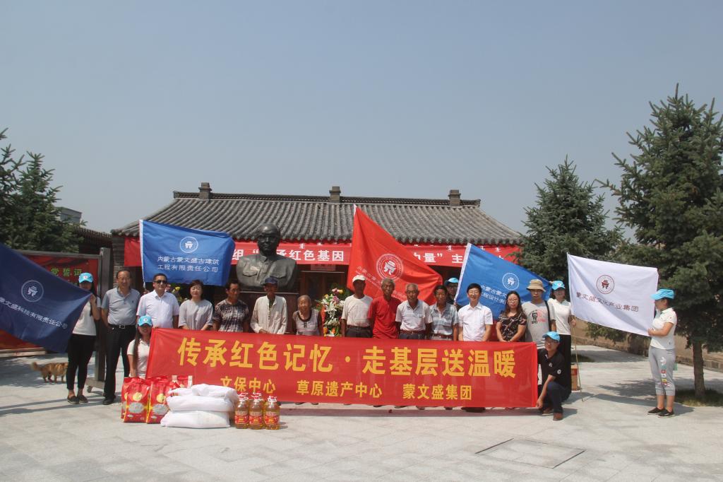 2017年7月1日,公司党总支书记梁文美、db真人草原文化遗产研究中心副主任孙璐老师参加了由内蒙古自治区文物保护中心、db真人草原文化遗产研究中心、内蒙古蒙文盛文化产业集团共同组织的建党96周年“传承红色记忆、将温暖和爱心送到基层”活动。