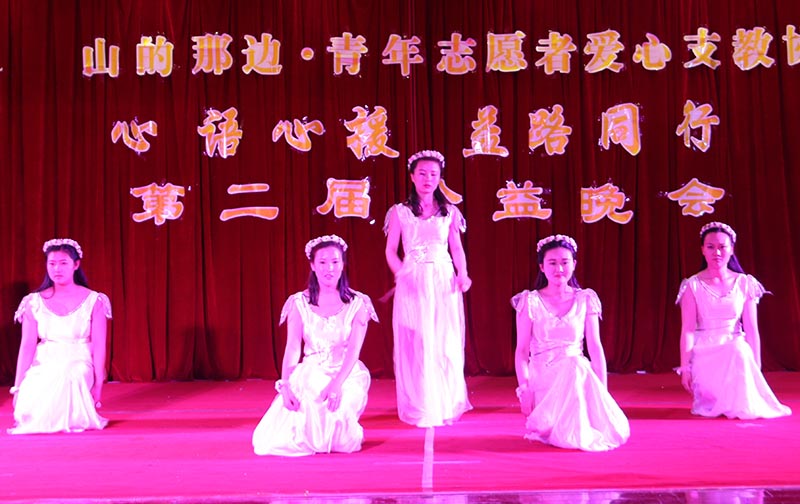 晚上七点,灯光闪耀,音乐响起,晚会在音乐沙龙劲爆的开场秀中正式拉开了序幕。首先播放的是协会在过去几年的支教影像,画面中的点点滴滴,勾起了不少当年参加支教的同学的美好回忆。