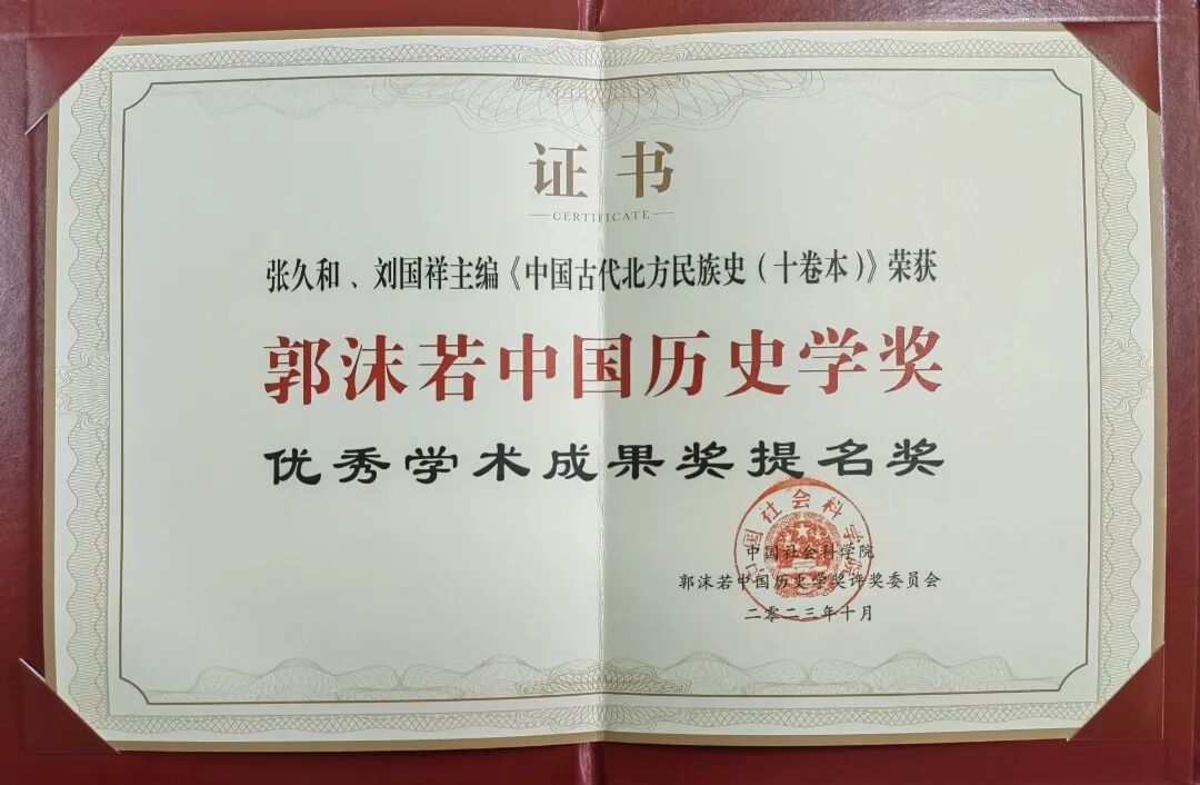 《中国古代北方民族史(十卷本)》荣获郭沫若中国历史学奖优秀学术成果奖提名奖