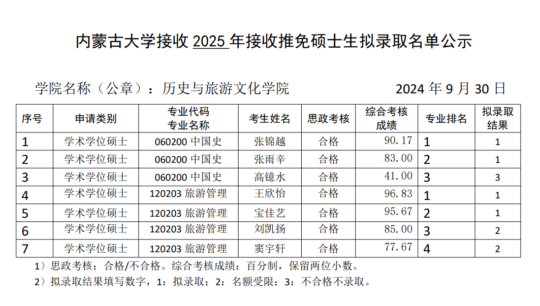 db真人接收2025年接收推免硕士生拟录取名单公示