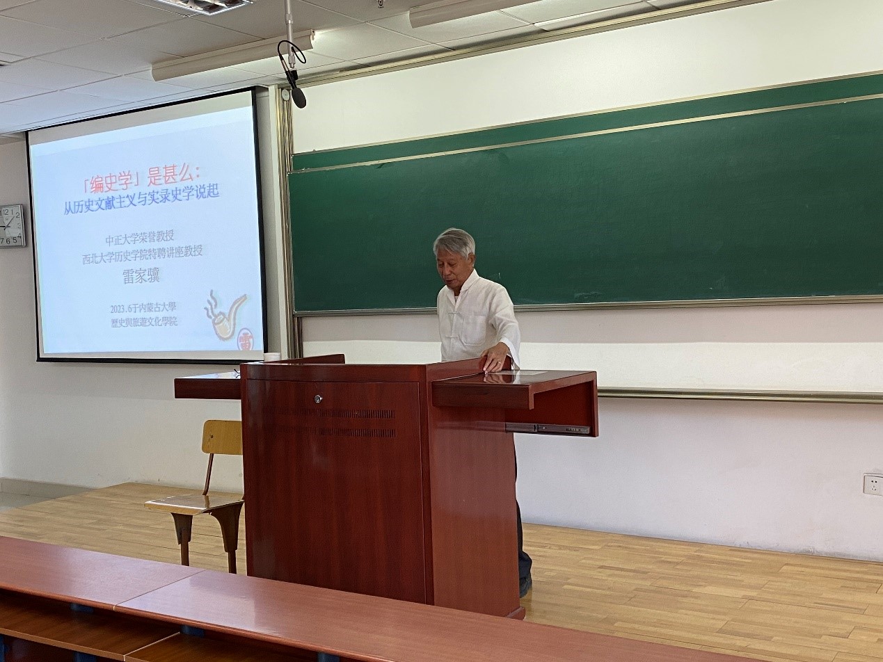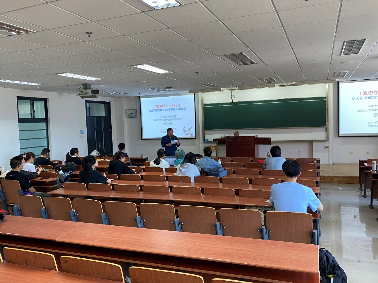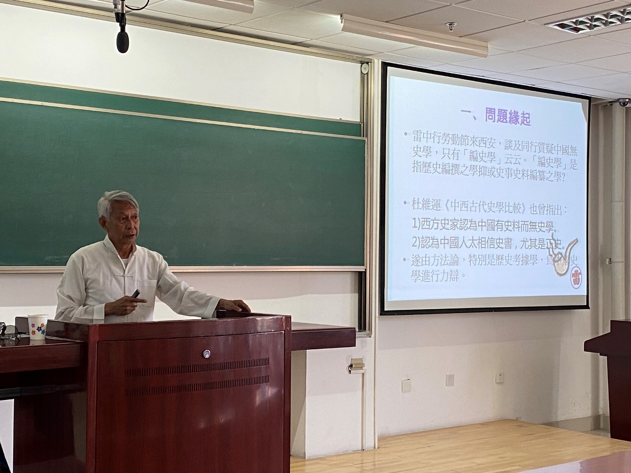 2023年6月2日上午,公司第九期“青山”史学名家讲坛在南校区卓越楼XF0302教室成功举办。此次活动由台湾中正大学荣誉教授、西北大学历史公司特聘讲座教授雷家骥先生主讲,题目为《“编史学”是什么?从历史文献主义与实录史学说起》。db旗舰经理李德锋教授主持活动,公司教师胡玉春、王星晨及各年级本科生、研究生参加活动。