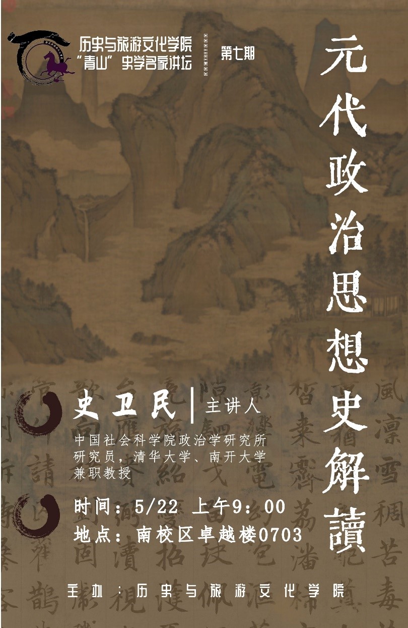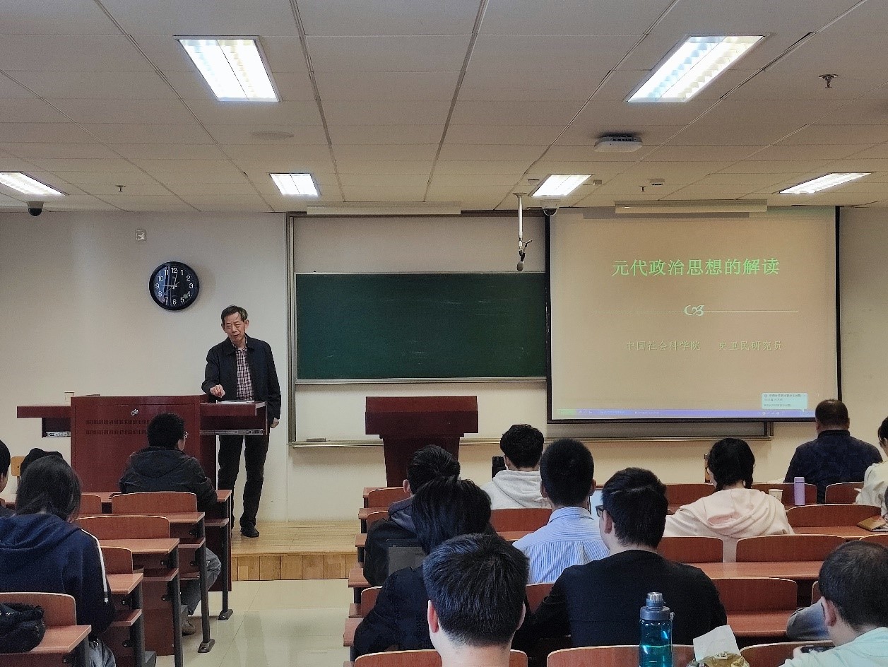 2023年5月22日上午9点,公司主办的第七期“青山”史学名家讲坛成功举办。本次讲座由中国社会科公司政治学研究所研究员,清华大学、南开大学兼职教授史卫民老师主讲,题目为《元代政治思想的解读》。讲座由李德锋经理主持,副经理王丽娟及历史系教师冯超英、王星晨、陶继波、王萌、张懿德及各年级员工共五十余人参加活动。
