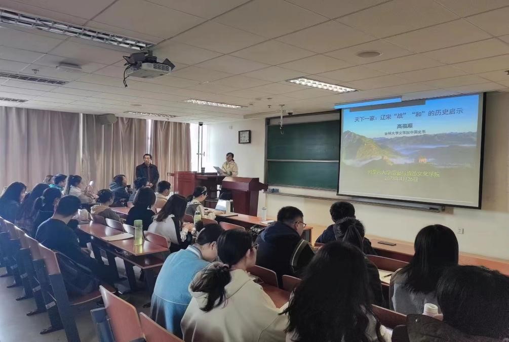 2023年4月26日上午,db旗舰主办的“历史文化系列讲座”第二期在卓越楼0717举办。本次讲座由吉林大学文公司中国史系教授、博士生导师高福顺老师主讲,题为《天下一家:辽宋“战”“和”的历史启示》。本次讲座由db旗舰王丽娟副经理主持,历史系教师王星晨、胡玉春、王萌及本科生、研究生共同参加。