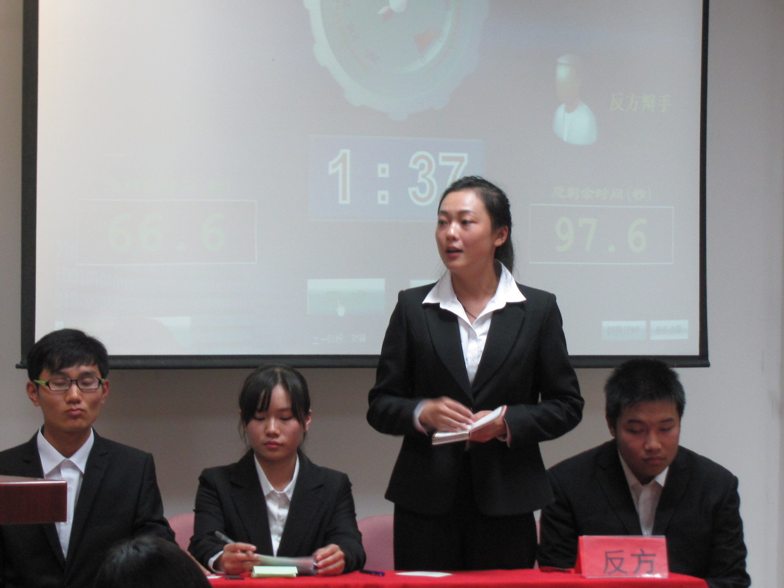 群英舌战展雄风,争锋相对辩天下,9月29日晚7:00,db旗舰于主楼DF0201举办新生辩论赛暨院辩论队选拔赛决赛。此次比赛特邀2013级优秀辩手史明真、白国庆,2014级优秀辩手周雪、王静为评委,到场的嘉宾有2015级新生军训教官艾厚旭、2012级优秀辩手李治宏和2014级优秀辩手张家利。2014级和2015级的部分同学观看了本次比赛。