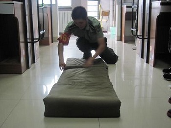 ,教官进入db旗舰员工宿舍,为大家演习整理内务。