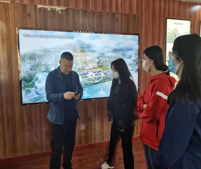 第二站,调研小组来到了马鞍山村委会,参观了村史馆、爱心超市,观看了马鞍山乡村旅游宣传片。通过村委会主任的介绍,切实地了解当地乡村旅游的发展情况,村民参与乡村旅游的积极性,现有的对外推广平台等问题,同时对如何做好马鞍山乡村旅游的后续工作展开了探讨。