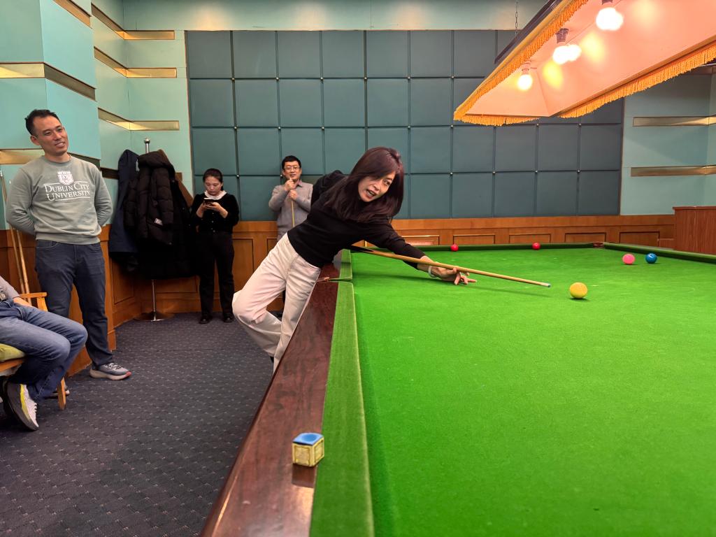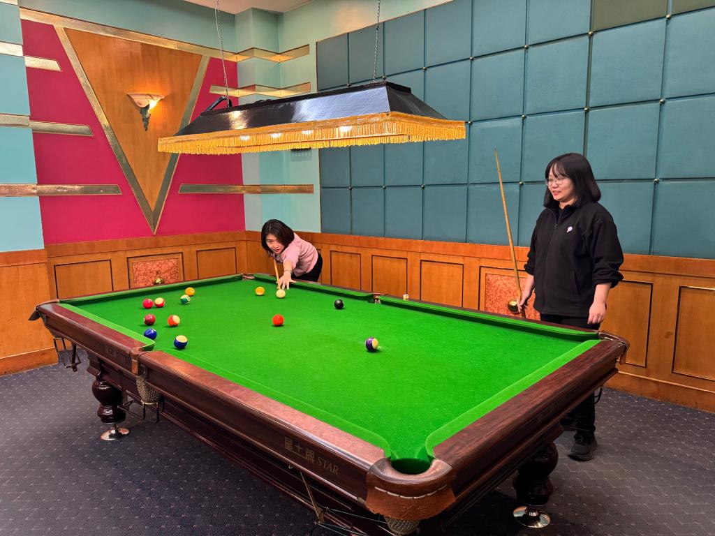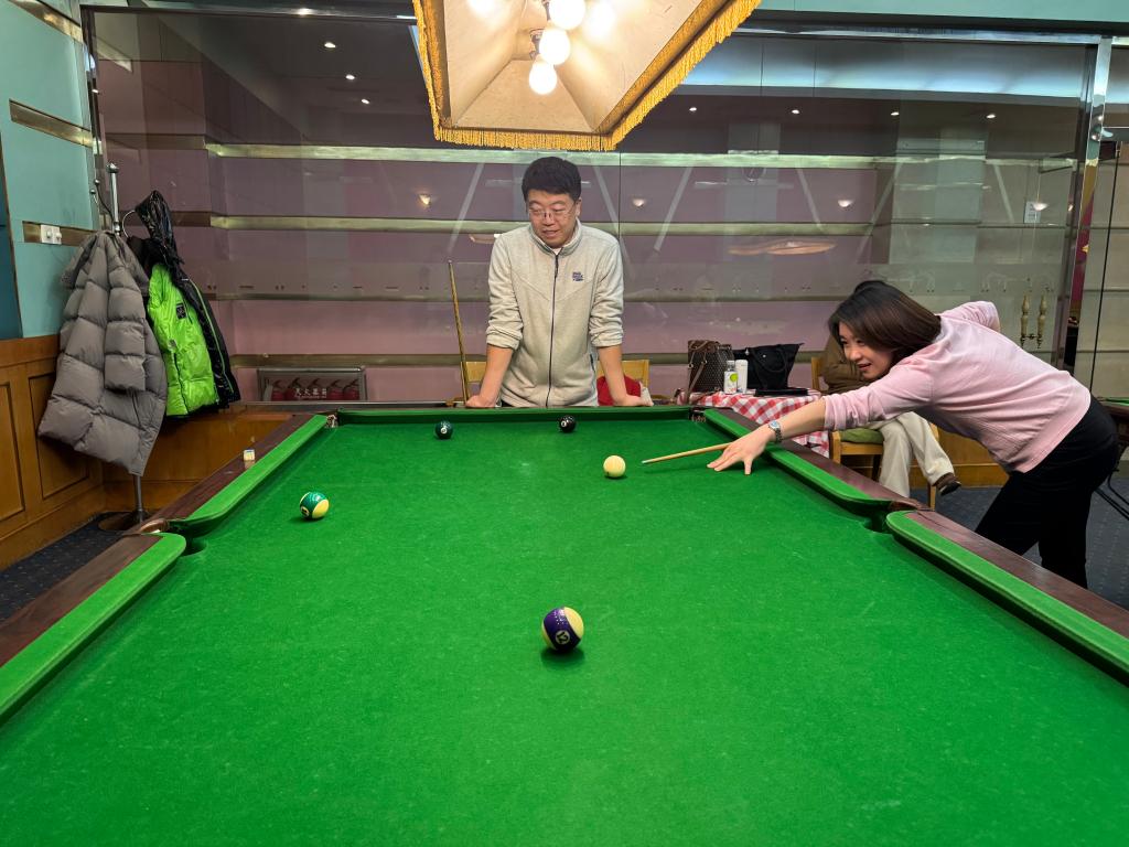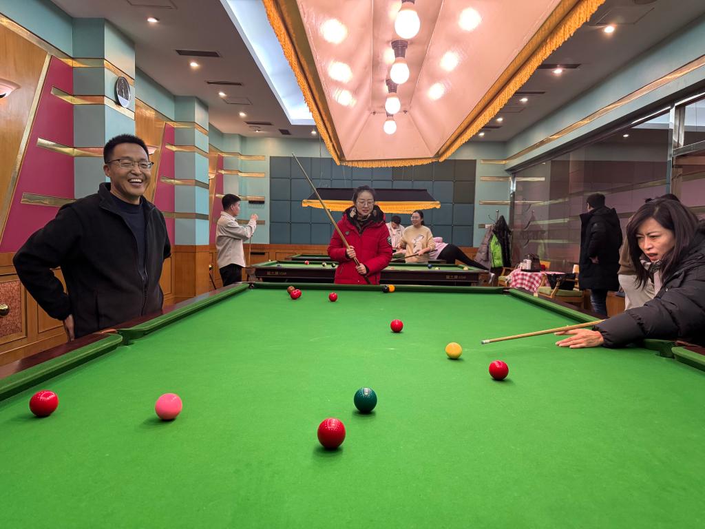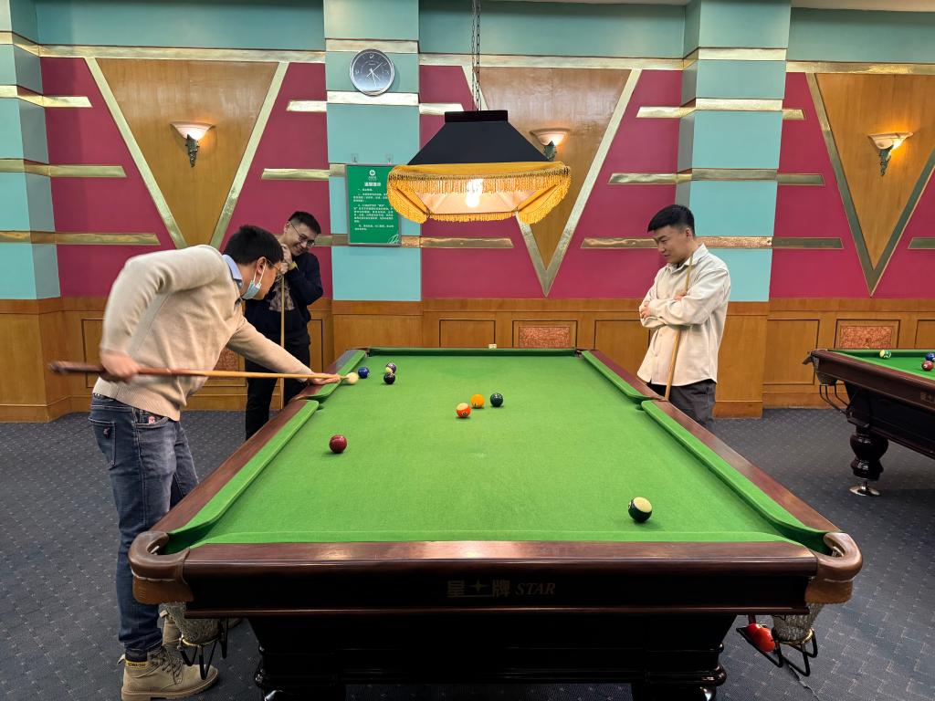 工会组织教职工参加台球、乒乓球、网球、壁球等游乐项目,场上的老师们不断变化着战术和打法,或精准进攻,或巧妙防守,场下的观众们不时的发出阵阵喝彩声和热烈的掌声,活动现场一片欢声笑语,老师们热情高涨,展示出良好的精神面貌。